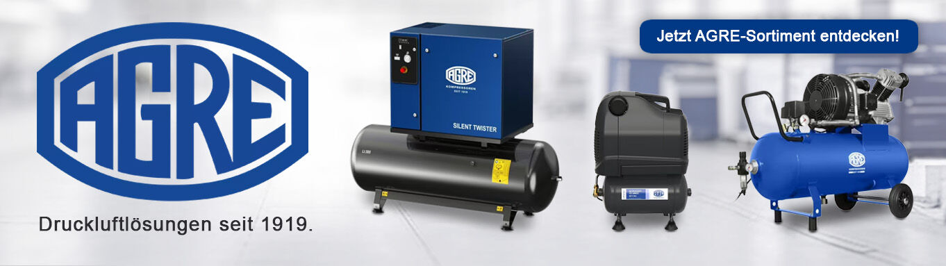 Willkommen im AGRE-Onlineshop – Ihrem offiziellen Fachhandel für AGRE-Kompressoren, Druckluftzubehör und Ersatzteile. Wir bieten Ihnen ein vollständiges Sortiment an Druckluftprodukten der Marke AGRE & unserer Parter-Marken – vom mobilen Kompressor über stationäre Druckluftsysteme für Handwerk und Industrie bis hin zu umfangreichem Zubehör für die Druckluftaufbereitung und -verteilung.